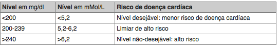 A Associação Americana do Coração relaciona os seguintes níveis de colesterol sanguíneos totais em jejum e o risco para doenças cardíacas: